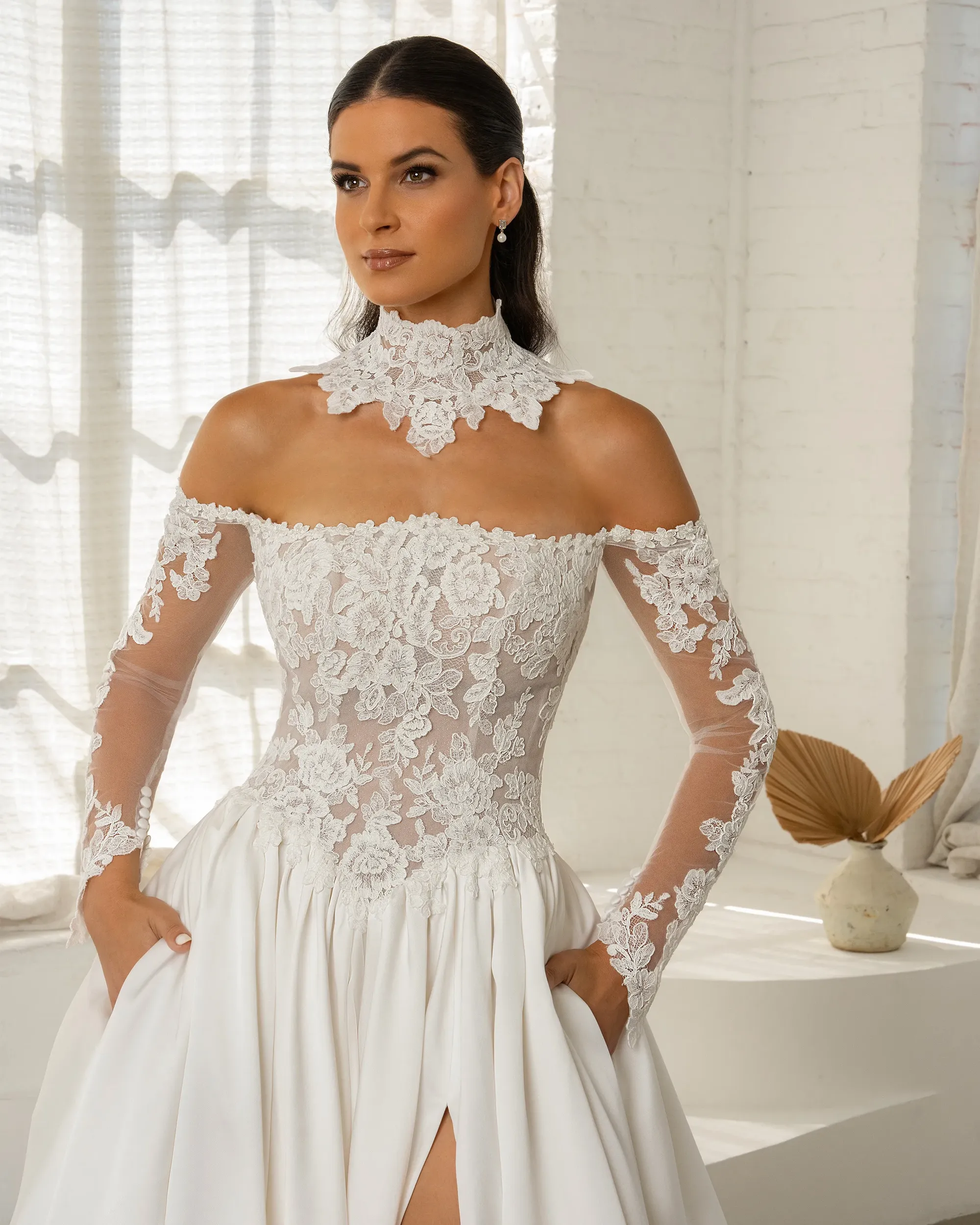 For best results, we advise having a professional seamstress or tailor take your measurements. If you measure in between sizes, we recommend ordering the size larger and tailoring the gown down for a perfect fit. Please note that most gowns will require alterations regardless of measurements.